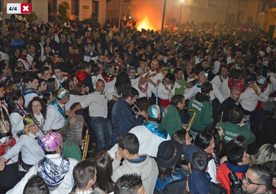 A partir de ahí, empezaron a encenderse las 23 hogueras que se repartieron por el recorrido, alimentadas con leña de romero, encina y jara y el júbilo colectivo se apoderó de toda la población con el inicio de la carrera. En este caso, el ritmo de la carrera lo marcó en su cabecera tanto el tambor del Santo, que este año encarnó Alejandro, como la bandera. Luego tocó el momento de disfrutar hasta altas horas de la noche. Unos en sus monturas, adornadas con las típicas mantas ‘guapas’ de madroños multicolores, otros integrando la infantería y el resto contemplando a pie de calle una fiesta tan espectacular.